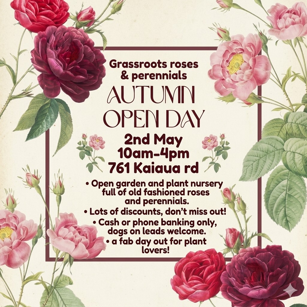 Lots of interesting, hard to find old fashioned perennials and roses and other bargains too. Just 20 minutes south of Bombay in the stunning Kaiaua Valley.